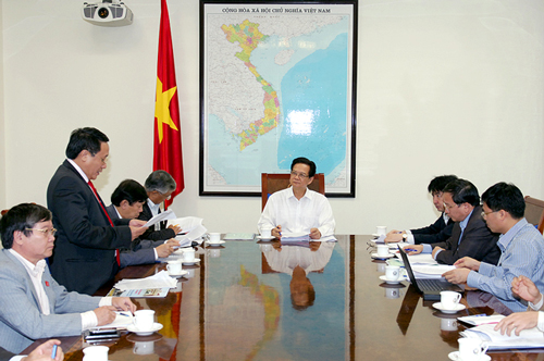 Chiều tối 10/11, Thủ tướng Nguyễn Tấn Dũng có buổi làm việc với lãnh đạo tỉnh Quảng Trị về tình hình kinh tế - xã hội và xử lý một số kiến nghị của địa phương.