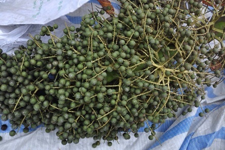 Các vị cao niên ở địa phương cho rằng cây "lạ" này lần đầu tiên họ thấy trong đời; mấy chục năm mới ra hoa kết quả. Vì vậy nhiều người cất công lượm quả về làm trang sức. Ông Trần Thanh Quang, nhà cạnh chùa tham gia lượm được hơn 1.000 quả. Ông Quang nhận đánh vỏ, chà nhám trái cây này và cũng kiếm được khá nhiều tiền.